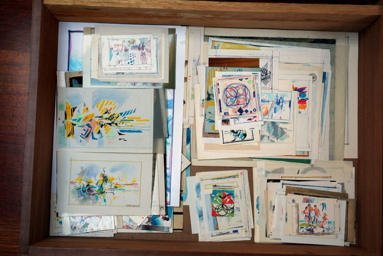 Imagem de uma gaveta com desenhos.