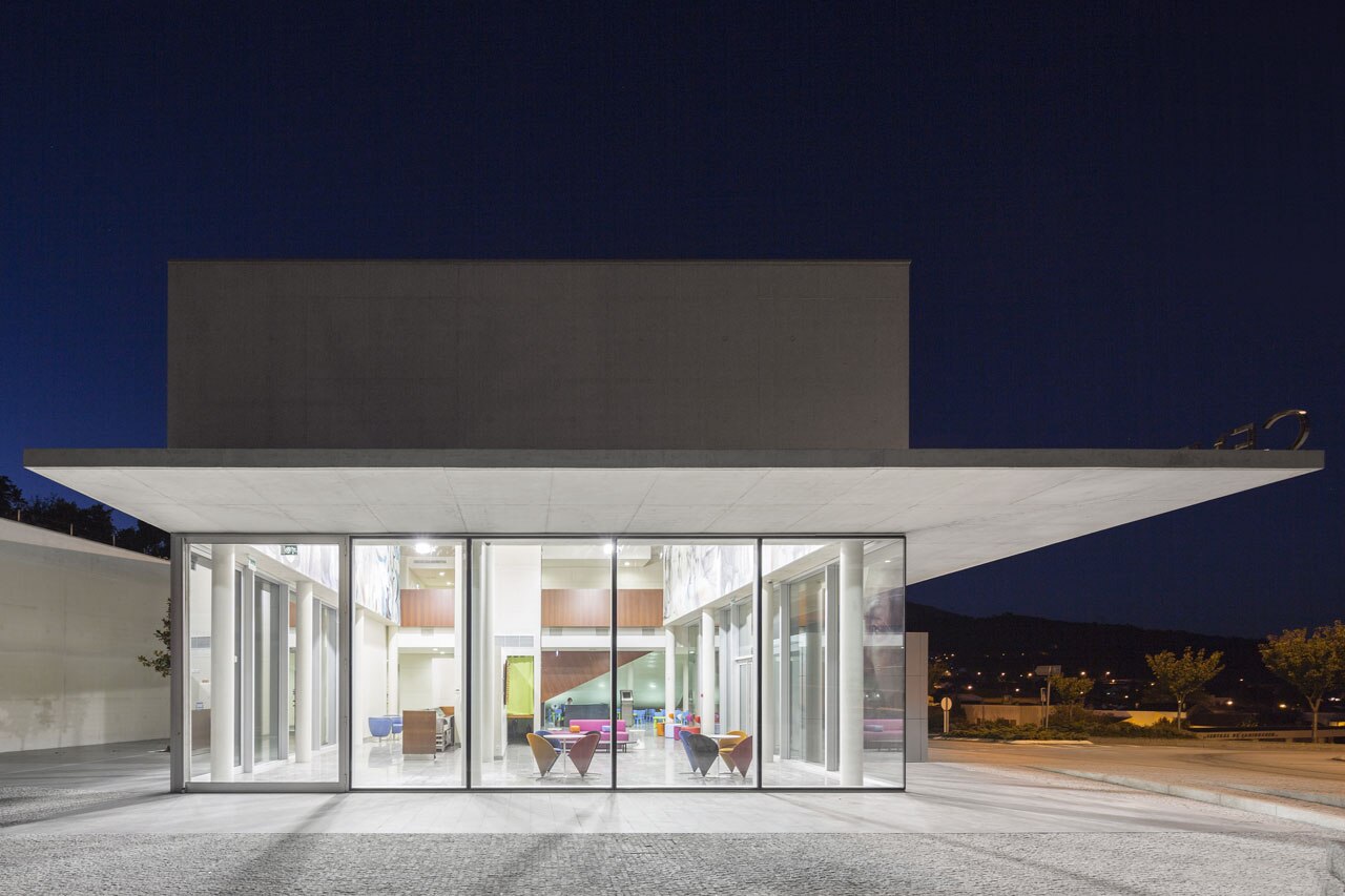 Merging architecture and landscape, Centro de Artes Nadir Afonso links an emerging urban center with its pastoral environs. The1858-square-meter single artist museum fuses a light, lucid contemporaneity with the rich materiality and sustainability of Portuguese design to honor one of Portugal’s most beloved native sons, the artist Nadir Afonso. As well as paying homage to the artist, who formerly practiced architecture with Le Corbusier and Oscar Niemeyer, the Centro, along with the artist’s foundation in nearby Chaves, will serve as an engine driving economic, cultural, and community development in the region. Sliced into a steep hillside, the new art museum is divided into two distinct, but connected, parts: a light-filled cultural center looking out upon the intersection of a national highway and City Hall; and, nestled in the back, a vast, below-grade exhibition space topped by a green-roof park.