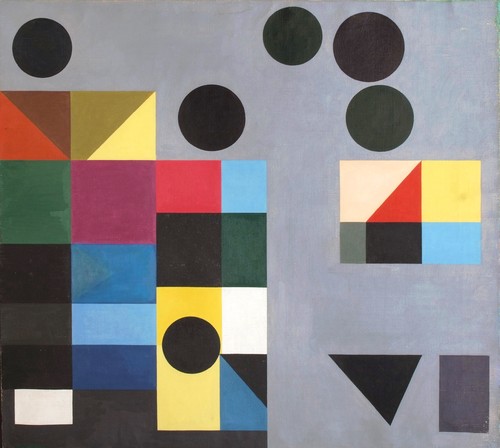 He limited his palette, showing a preference for the primary colours. Through the use of an affirmative and vibrant chromaticism, he gave life to the geometric shapes that he chose, which included squares, circles, triangles, and rectangles. On flat surfaces, painted in soft, neutral colours, the geometric shapes are arranged in an individualized manner and combined in multiple variants, as in a game of “logical blocks”, at times containing overlappings that give rise to other complementary shapes among the elementary forms and intervening spaces. Mathematics definitively acquired a decisive importance in Nadir's work; geometry was the fruit of this interest and the harmony of the relations of proportion and modulation in space could only be achieved through the sensibility of the intuitive route, the fruit of artistic experience. This series of works would later be developed during his stay in Brazil, where he conveyed a different dynamic in space and a greater sense of vibration.